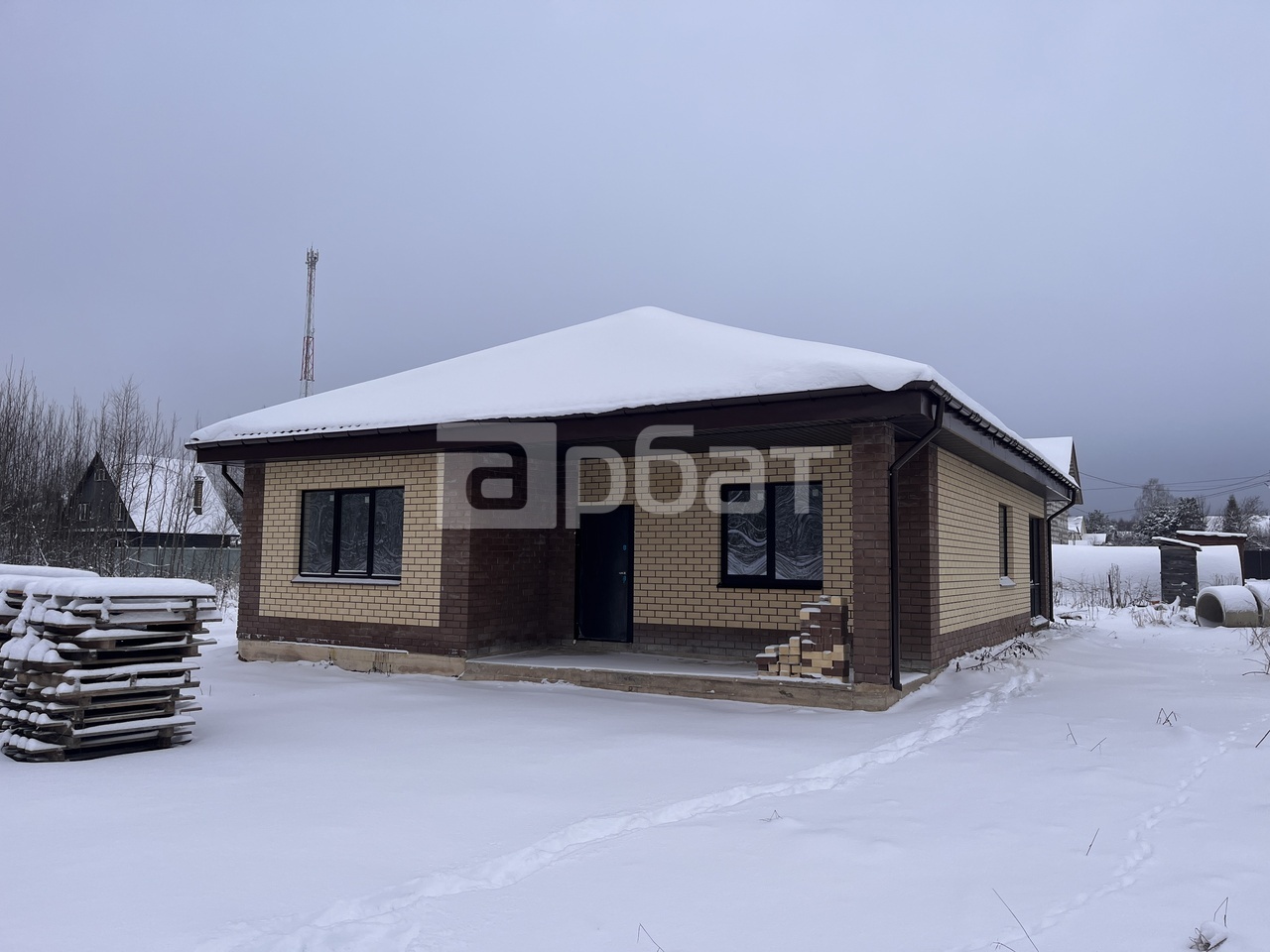 Продается дом в пос. Зарубино. Крупный населенный пункт со школой, детским садом, магазинами и аптеками. Регулярное автобусное сообщение! Дом 132 м2. Современный проект одноэтажного дома. С крыльцом и верандой. Панорамные окна и удобная планировка. Хороший ровный участок 11 сот в собственности.