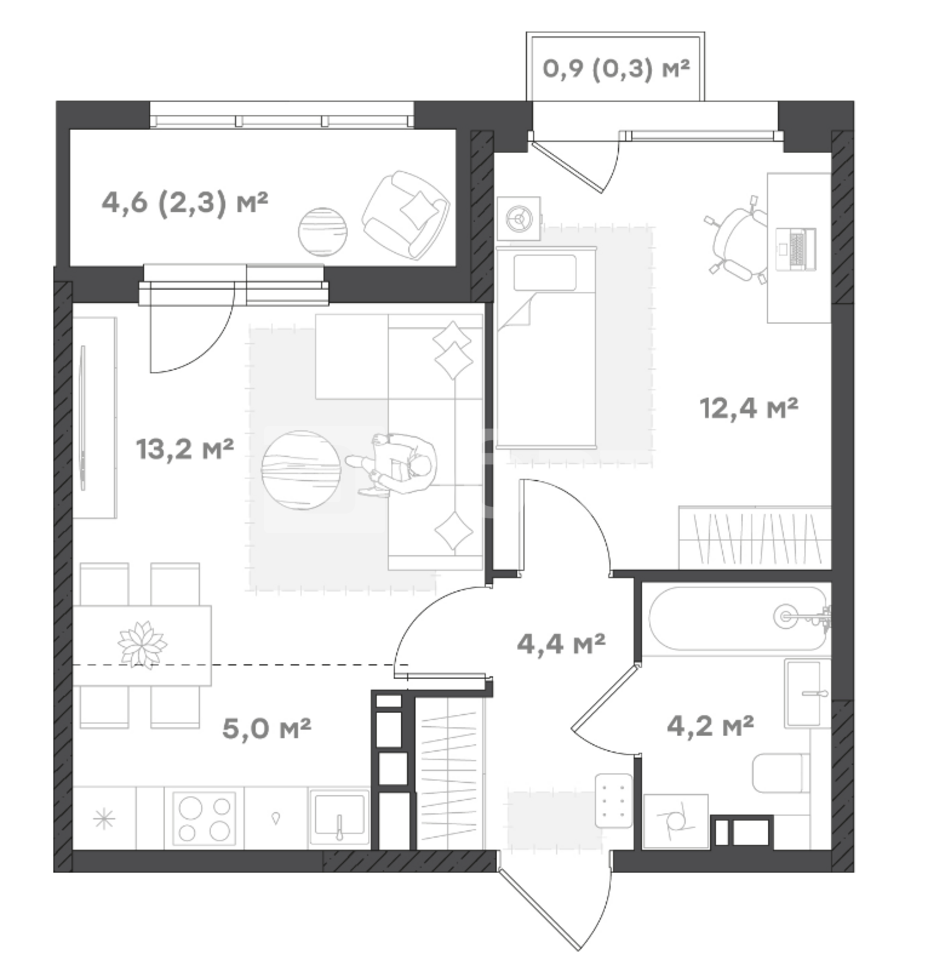 1-комнатная квартира, 41.8 м²