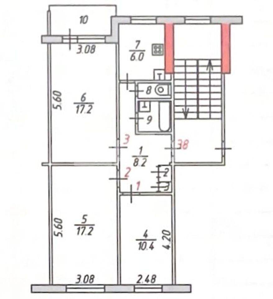 3-комнатная квартира, 63.2 м²