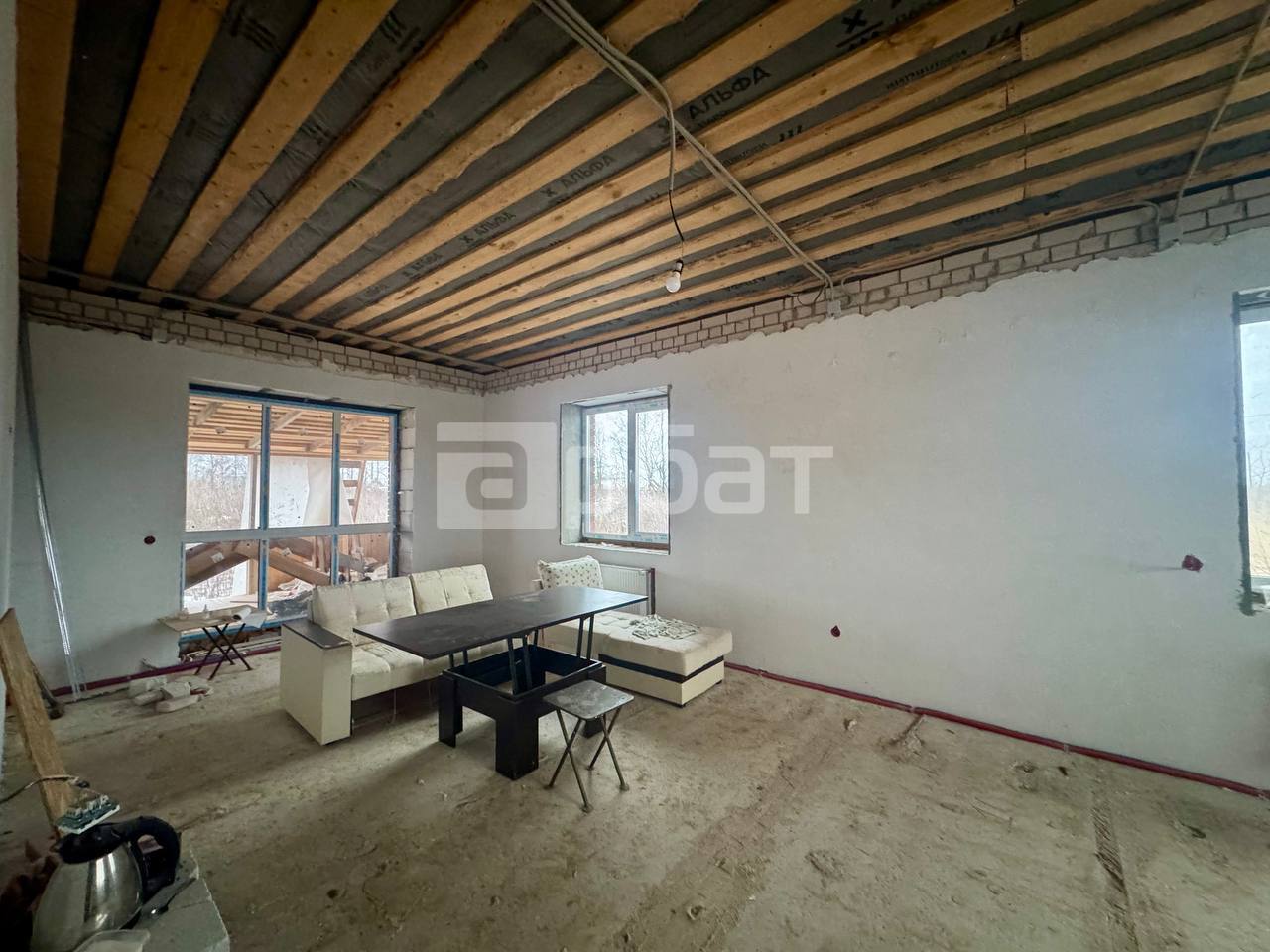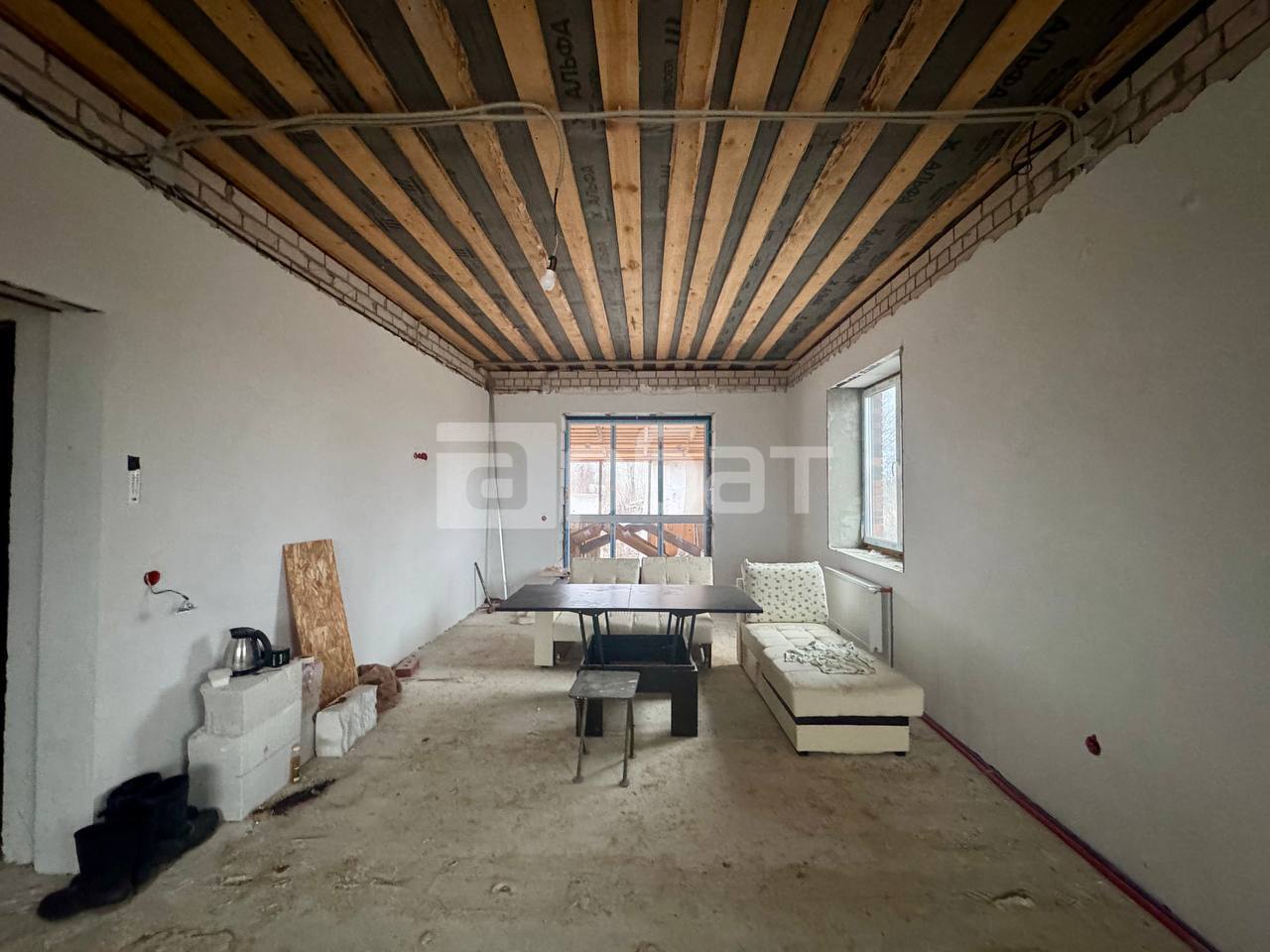 🏡Продается одноэтажный дом в поселке Первом с общей площадью 150 кв.м. Участок правильной формы, сухой, площадью 8.8 соток, в собственности с полученными документами. Основные характеристики: • Фундамент: Свайно-ростверковый. • Стены: пеноблок 400 мм плотность Д500 + облицовочный кирпич. • Установлены качественные энергосберегающие стеклопакеты и хорошая фурнитура. • Крыша: гибкая черепица с утеплением 200мм, водосточная система металлопластик. • Комнаты: три изолированные комнаты, санузел, большая кухня-гостиная с выходом на террасу, гардеробная. • Гараж в доме. • Отделка: дом сдается в черновой отделке. Стены отштукатурены по маякам, электрика разведена по дому. • Отопление: двухконтурный газовый котел и система теплого пола. Дополнительно: • Не подходит под льготную ипотеку. • Полное юридическое сопровождение и финансовая гарантия безопасности сделки. По всем вопросам обращайтесь по телефону!