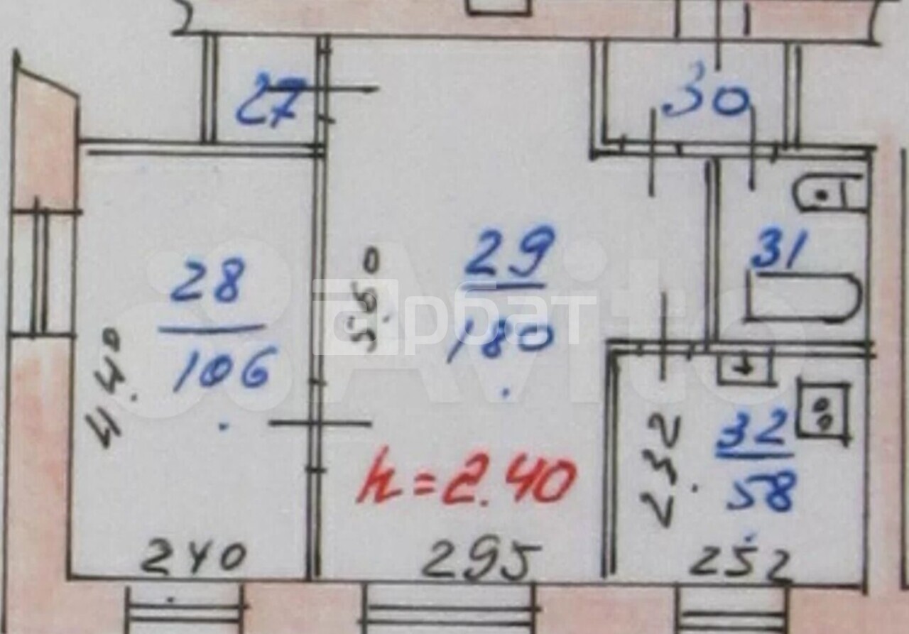 Жилая площадь, кв.м. 28.6