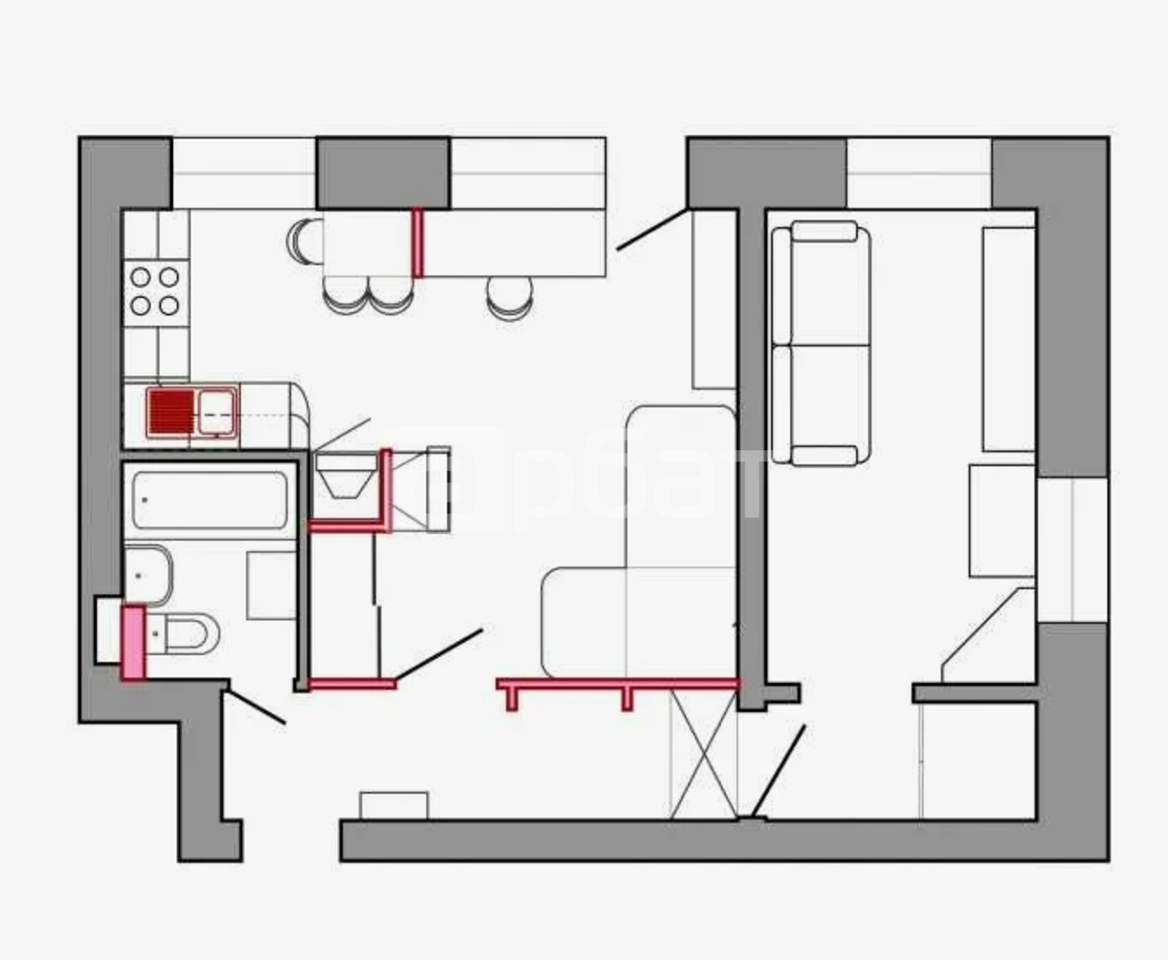 2-комнатная квартира, 43 м²