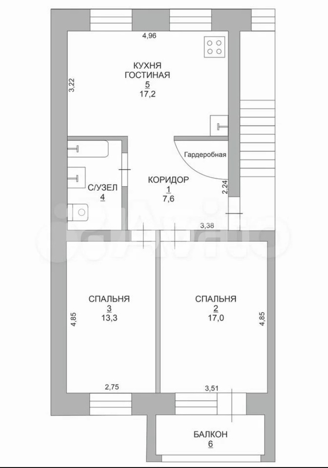 Количество комнат 2