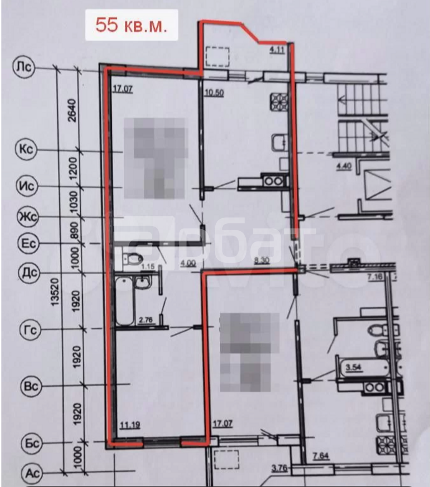 Общая Площадь, кв.м. 55