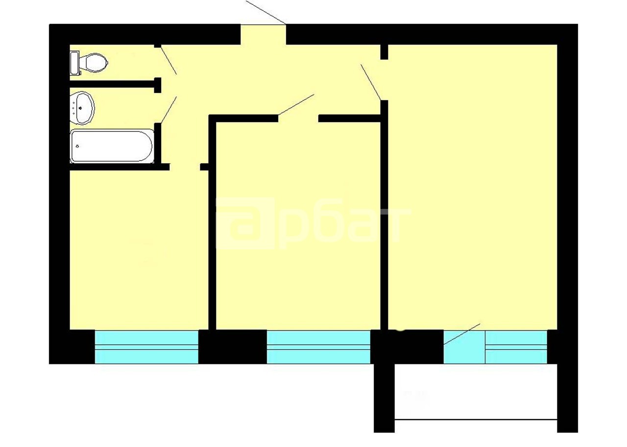 2-комнатная квартира, 38.4 м²